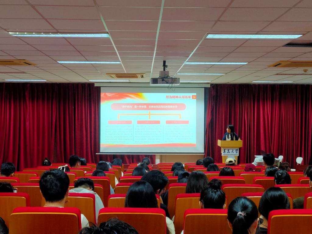 10月25日晚,bw西汉姆联员工党支部于金家岭校区图文中心三楼报告厅举办“肩负重任,挺膺担当,争做时代好青年”主题宣讲。“雁政行”宣讲团成员荣靓赛担任主讲,公司全体2023年秋季学期党员发展对象、入党积极分子和主要团学骨干参加本次宣讲活动。