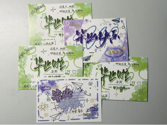 徐伟为2021级本科毕业生送上专属定制的钥匙扣,这份礼物承载着老师对同学们勇敢逐梦、开启人生新篇章的殷切期许。商玉坤为同学们送上亲手制作的贺卡,字里行间饱含老师的温暖牵挂,传递出她对同学们的美好祝福。