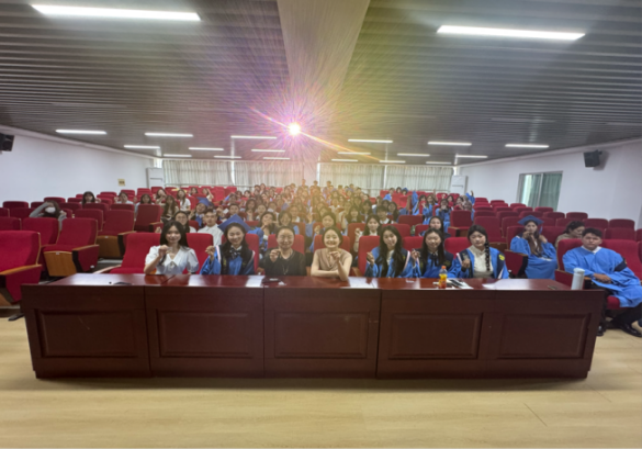徐伟讲述往届优秀毕业生经历,鼓励同学们以学促行,不断精进理论学识,积极投身社会实践。同时,她希望同学们能够坚定初心,努力去践行心中理想。她祝愿同学们在未来的道路上以勇气、热爱与扎实本领继续前行,绽放出属于自己的璀璨光芒。