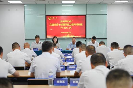 92日,“‘东西协作’文县党政干部履职能力提升培训班(第一期)”在bw西汉姆联会议中心402举行开班仪式。文县县委常委、组织部长李丽,县委常委、副县长刘青春,公司党委书记尹文博,经理陈洪连出席开班式,仪式由陈洪连经理主持。文县党政有关单位(部门)以及街道(镇)党政干部40余人参加了本次培训。