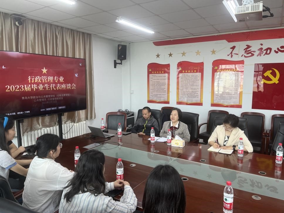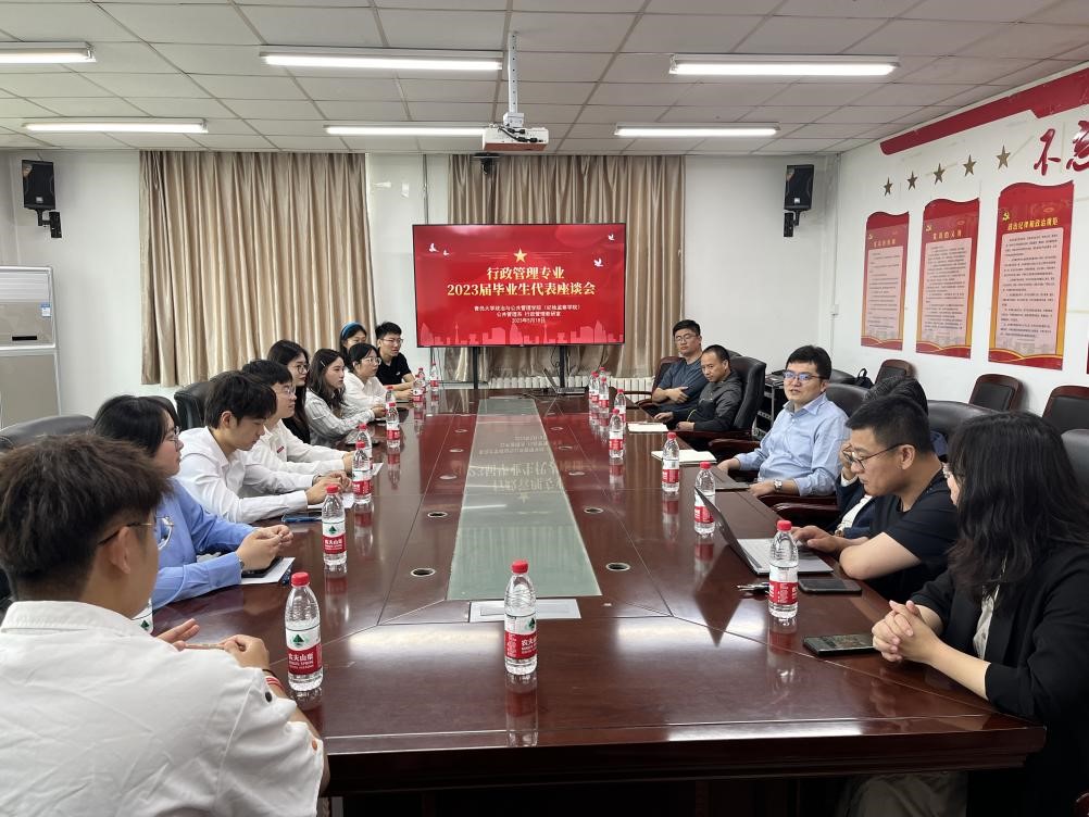 为进一步改进教学工作,提高人才培养质量,充分听取毕业生的意见与建议,5月18日,行政管理专业2023届本科毕业生代表座谈会在214会议室召开。公共管理系老师与本科毕业生代表齐聚一堂,共话本科四年学习生活的感悟收获,畅谈人生未来的发展规划。