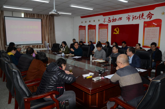 1月2日下午,bw西汉姆联在金家岭校区2号实验楼214多功能活动室召开党的十九届四中全会精神宣讲会,党委书记程济华主持会议。