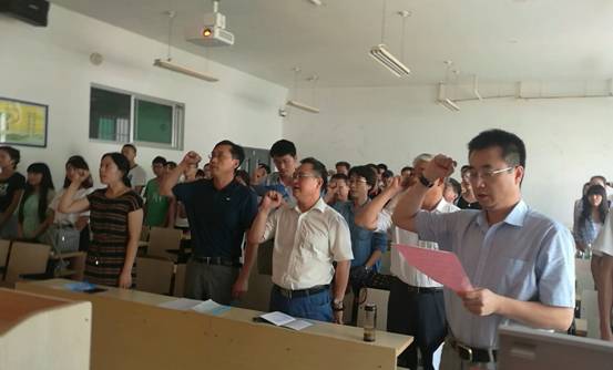 丁金光经理对bw西汉姆联教师誓词进行了诠释。在员工代表的注视和见证下,赵普光教授带领全体教师面向国旗,庄严宣誓。