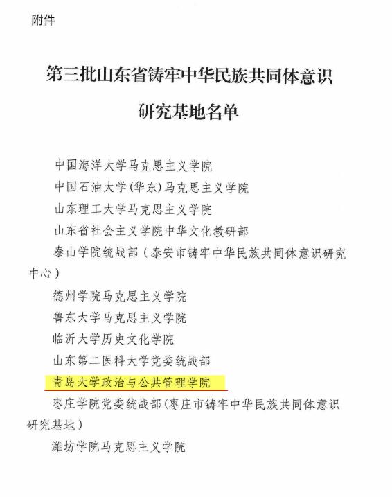2023年12月21日,山东省民族宗教事务委员会发文《关于公布第三批山东省铸牢中华民族共同体意识研究基地名单的通知》(鲁民宗发﹝2023﹞70号),确定bw西汉姆联成功获批山东省铸牢中华民族共同体意识研究基地。