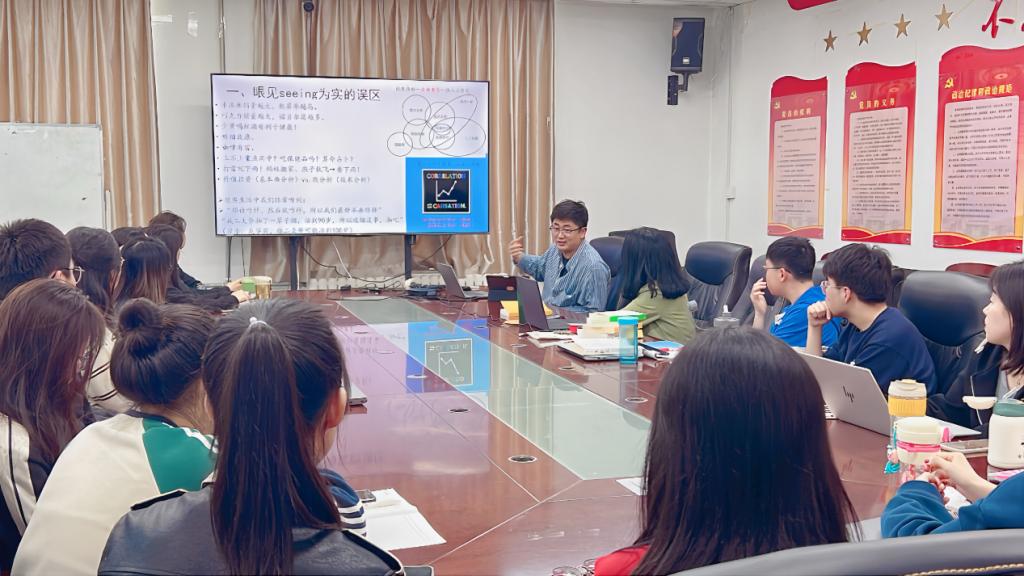 领读教师李志云最后进行书籍精讲,通过各类实例,深入解析相关关系与因果关系的知识,使原本晦涩抽象的因果科学变得生动具体。读书会活动现场气氛活跃,研讨问题深入透彻,老师与同学结合各类因果实例,分享各自的观点,相互启发与交流,形成了浓厚的学术研讨氛围。