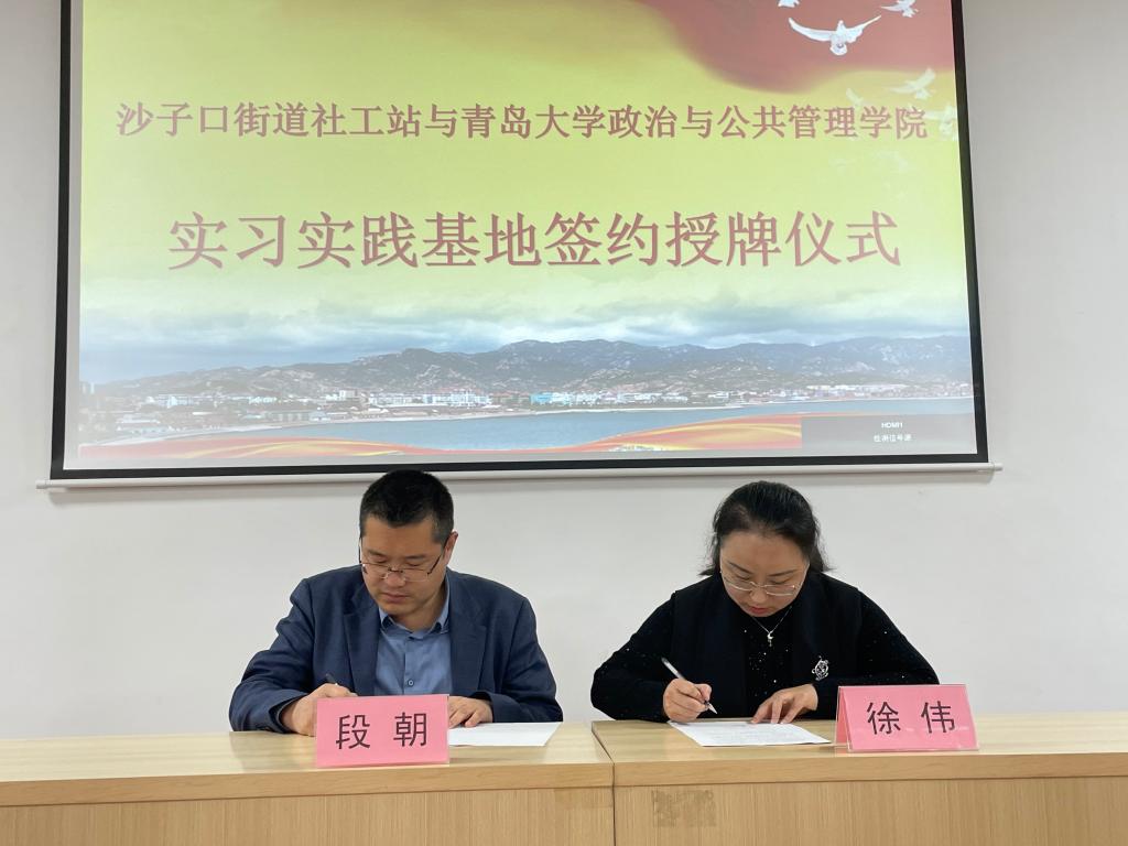 接下来,徐伟和段朝共同签署《青岛市崂山区沙子口街道社工站与bw西汉姆联签订实习实践基地共建合作协议》,徐伟代表bw西汉姆联为社工站授予“实习实践基地”牌匾。