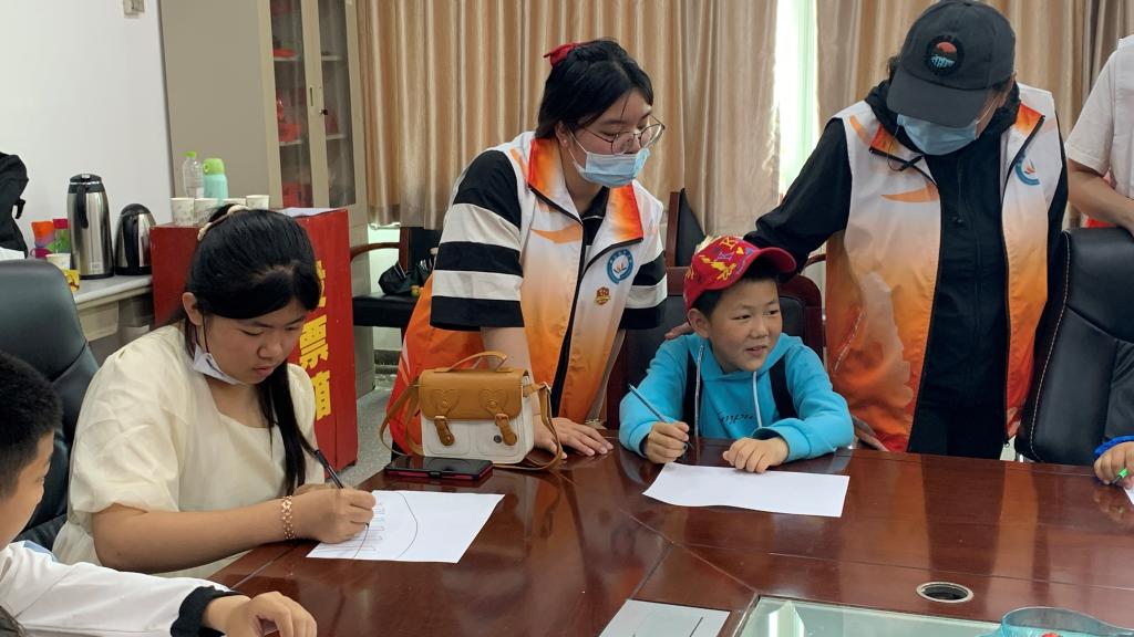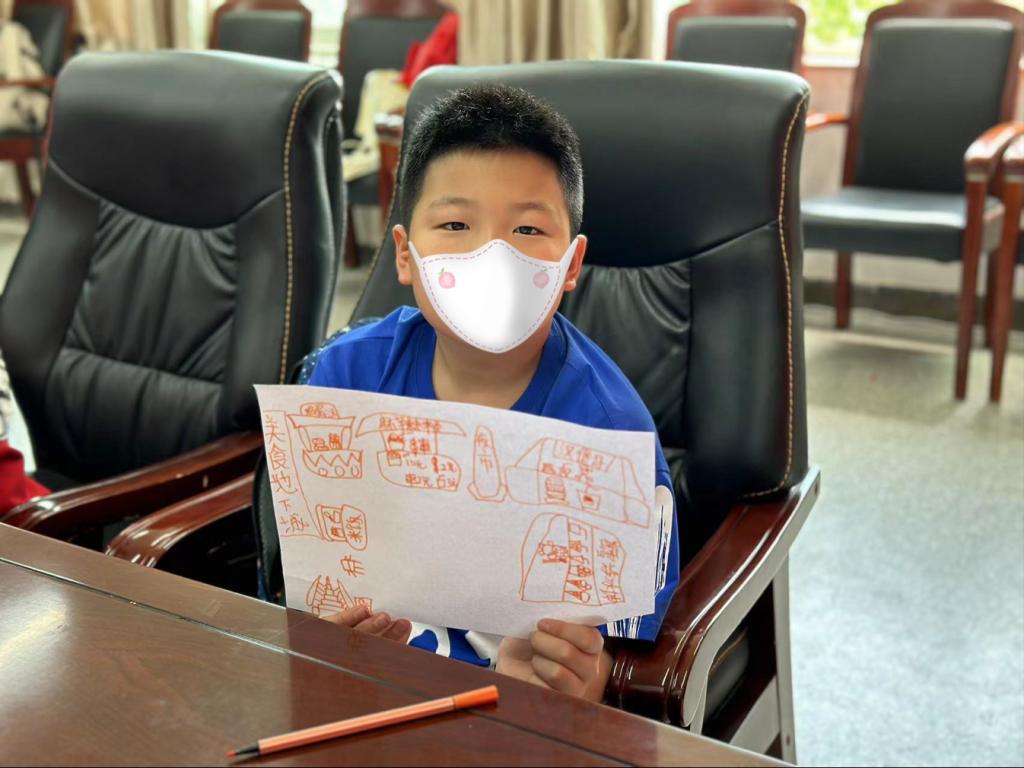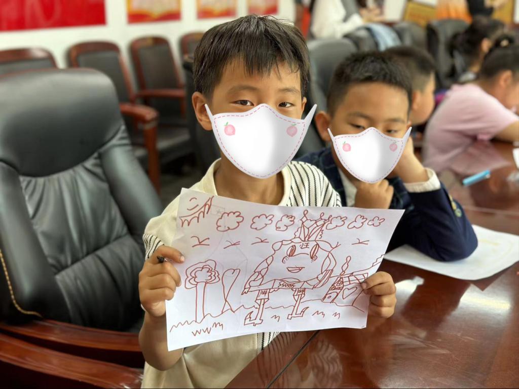笔绘童心,提升本领。参观结束后,员工党支部成员为小朋友们讲解绘画技巧,使他们能够熟练运用各种色彩、线条进行构图。孩子们结合参观校园留下的“青大印象”,尝试用自己的创意和想象构思不同的图案和元素,用手中的画笔绘制“我眼中的青大”。